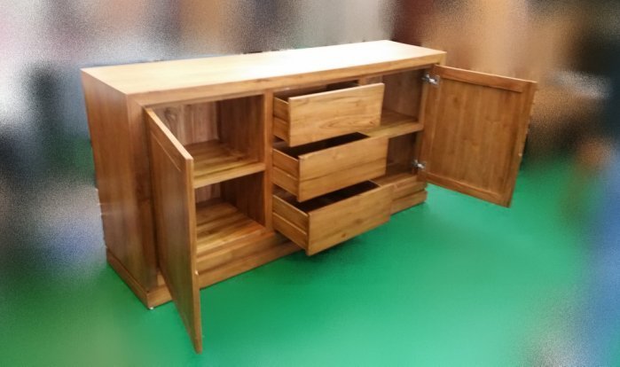 • 樂居二手家具 全新中古傢俱 TK-A0BC *原木 實木柚木2門3抽收納櫃* 餐櫃 電視櫃 隔間平面櫃 高低餐櫃 展示櫃