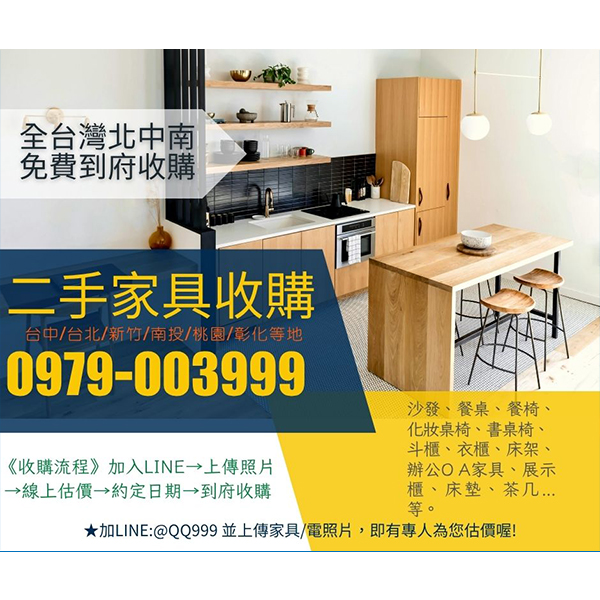 換季整理、搬家汰舊、店面撤場、房東清空套房?舊家具不想浪費、又懶得自己搬?我們在中部地區提供?快速到府收購服務!不論是個人住家、租屋族、公司行號或學生宿舍,只要您一通電話,我們馬上派專人到府估價、現場收購、當場現金交易,免搬免煩惱,一次搞定您的家具煩惱~
