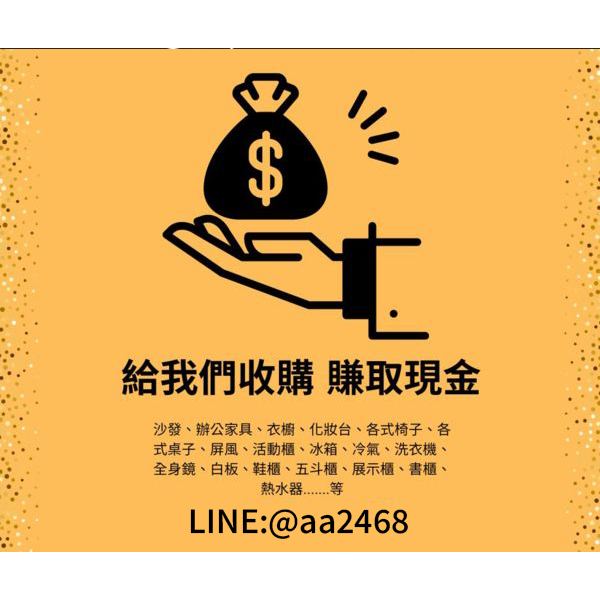 家裡舊沙發、床組、餐桌椅或家電佔空間?加入 LINE @aa2468 拍照即可線上估價,我們提供家具家電到府收購服務,不限款式、不限品牌,全程免搬運費與清潔費,專人專車快速收購,輕鬆釋放居家空間換現金。