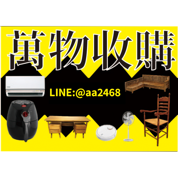 提供二手舊物高價收購服務,家具、家電、原木家具、辦公設備皆可收購。不限品牌、不限款式,專人估價、專車到府、現金交易快速安心。加入 LINE @aa2468 立即詢問。