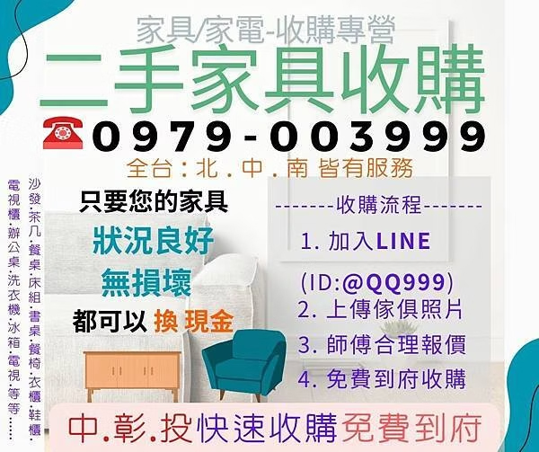 不用出門就能回收家具!家具換現金0979003999