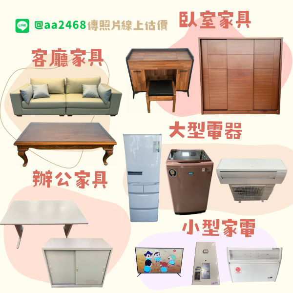 如果你家中正有想處理的家具與家電,現在就加入 LINE:@aa2468,上傳照片進行免費估價,讓專業團隊協助你快速安排到府收購。