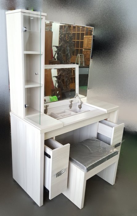 • 樂居二手家具館 中古傢俱 家電 *全新B113-3法式白橡鏡台+椅*化妝桌 穿衣鏡 臥室傢俱拍賣床組 床墊 床架
