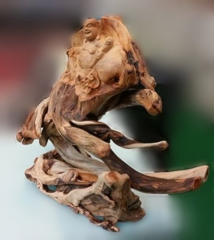 台北二手家具宏品 泰山中古傢俱館*R-A06*崖柏木天然木雕彌勒佛(中) 高級木材電視櫃 沙發 茶几 衣櫃 衣櫥 餐桌椅