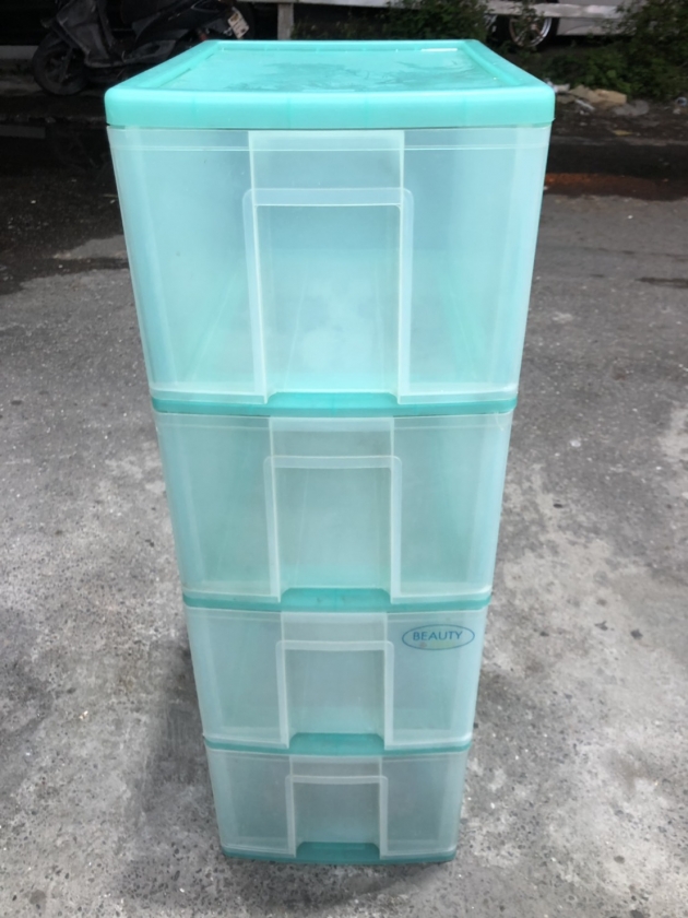 • 台北二手家具買賣 推薦 泰山宏品中古傢俱館 A121307 * 綠色4抽塑膠收納櫃 * 二手中古 斗櫃 收納櫃 衣櫃
