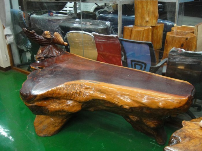 • 樂居二手家具生活館(中) 台中全新中古傢俱買賣 LG-806*實木紅豆杉泡茶桌 一體成形 達摩雕刻*仿古家具買賣 黑檀木