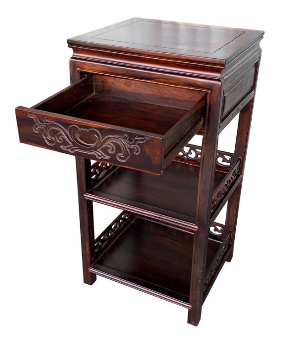 商 品 名 稱 介紹 :全新雞翅木二層一抽花架