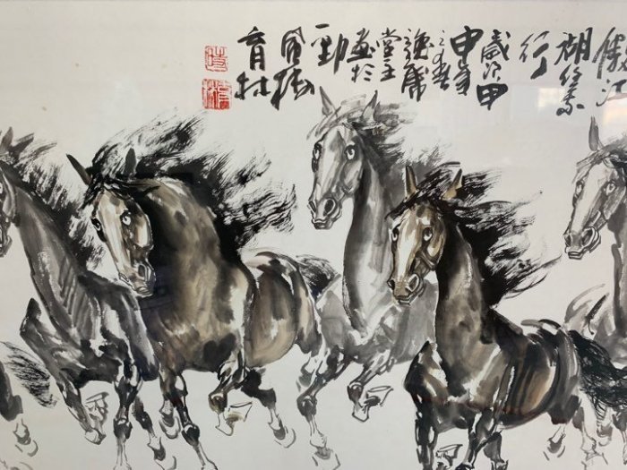 • 樂居二手家具(北) 便宜2手傢俱拍賣T80621*八駿雄風畫* 古董 藝品 字畫 木雕 各式原木家具古董家具仿古家具