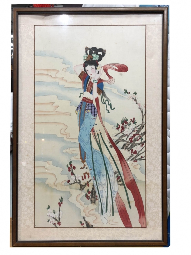 台北二手家具泰山宏品二手家具館*R31125*仕女圖* 中古雕刻藝品/字畫/木雕/礦石藝品/古董藝品買賣