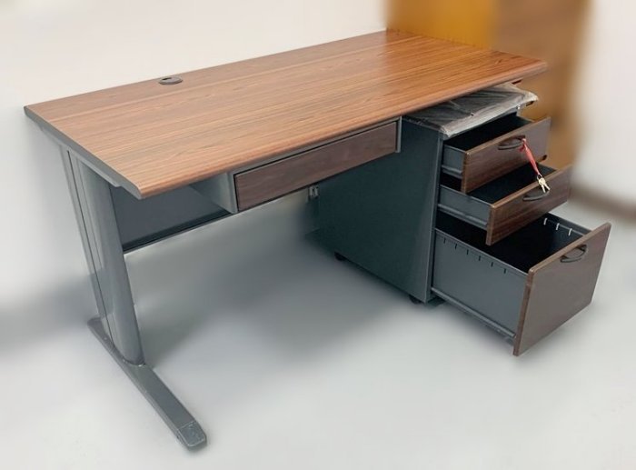 • 樂居二手家具賣場 EA82CD*全新深胡桃140CM+中抽辦公桌+活動櫃*中古oa辦公家具拍賣 滿千送百豐富喜悅新竹台北