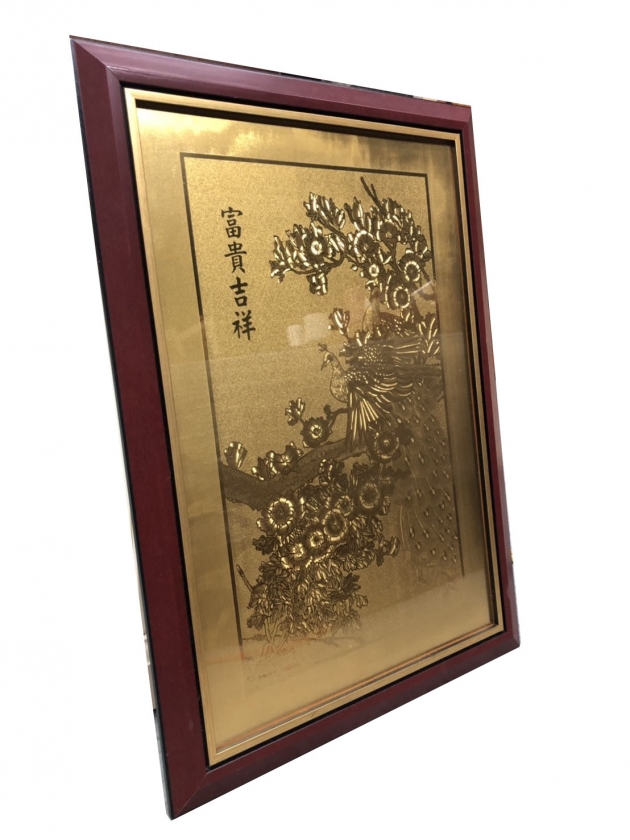 台北二手家具泰山宏品二手家具館*X532331*仿古金色孔雀畫* 中古雕刻藝品/字畫/木雕/礦石藝品/古董藝品買賣