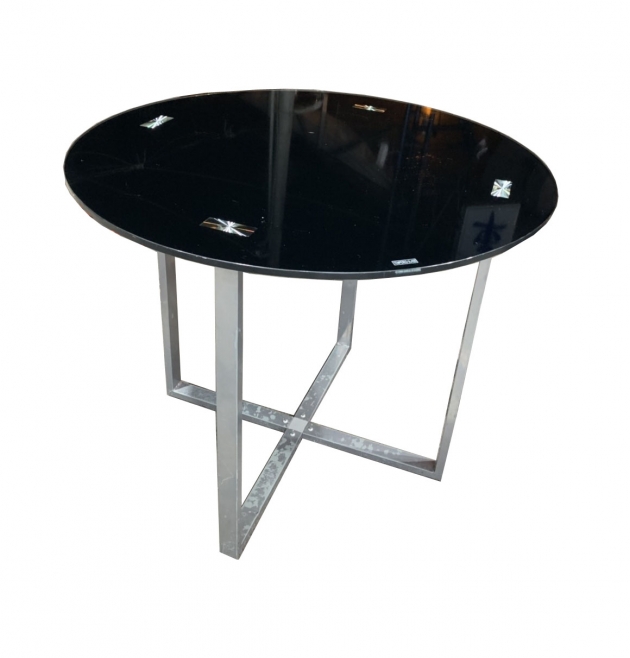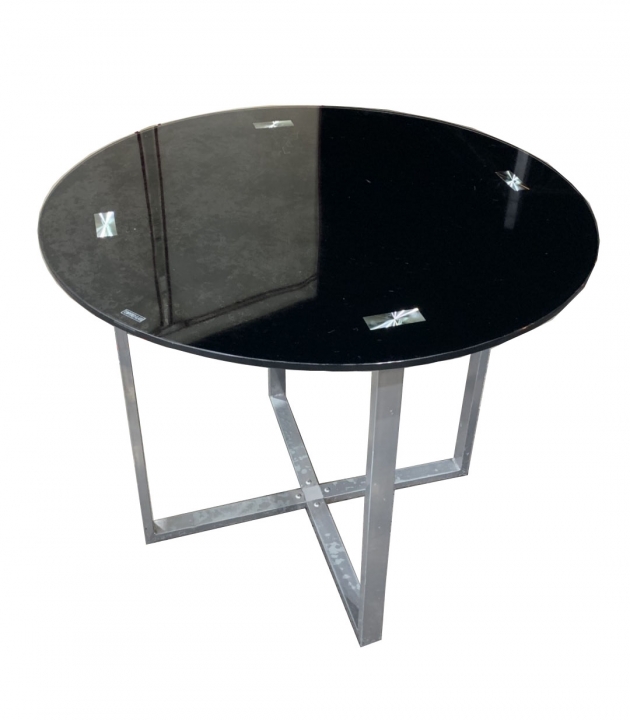• 台北二手家具買賣 推薦 泰山宏品中古傢俱館*E32616*黑玻璃圓桌*二手中古 餐桌 餐椅 茶几 吃飯桌 餐桌組椅