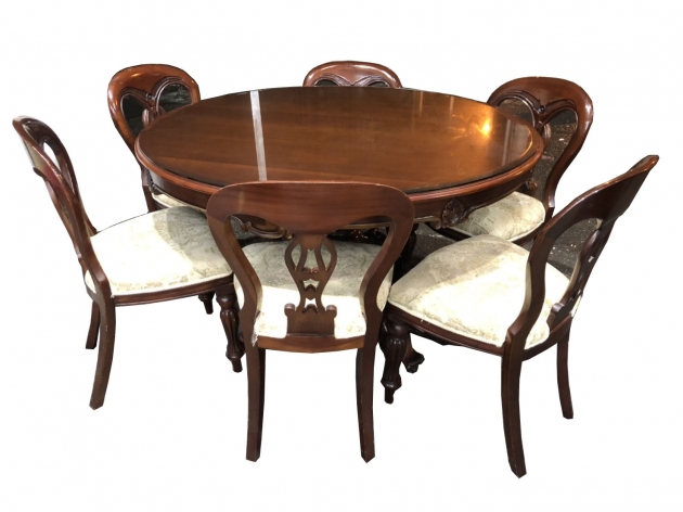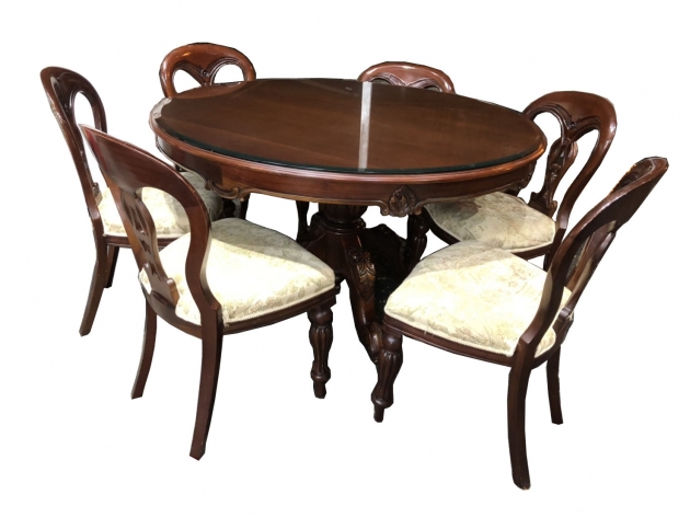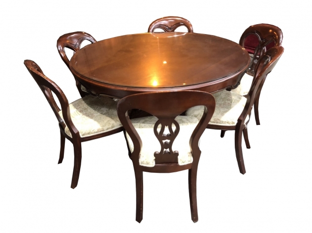 • 台北二手家具買賣 推薦 泰山宏品中古傢俱館*E33020*實木圓桌+6椅* 二手中古 餐桌 餐椅 茶几 吃飯桌 餐桌組椅