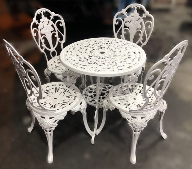 北二手家具買賣 推薦 泰山宏品中古傢俱館*E42125*白色戶外休閒桌 附4椅*洽談桌 滿千送百 豐悅商品 桃園新竹