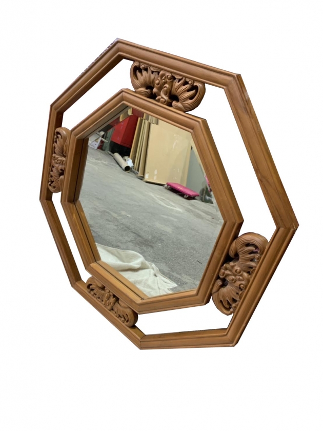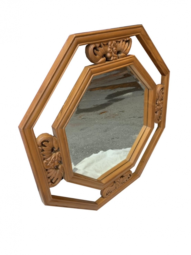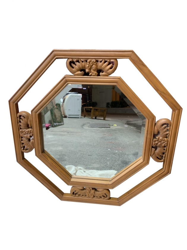 • 台北二手家具泰山宏品二手家具館 *TK43012* 柚木八角鏡 * 中古雕刻藝品/字畫/木雕/礦石藝品/古董藝品買賣