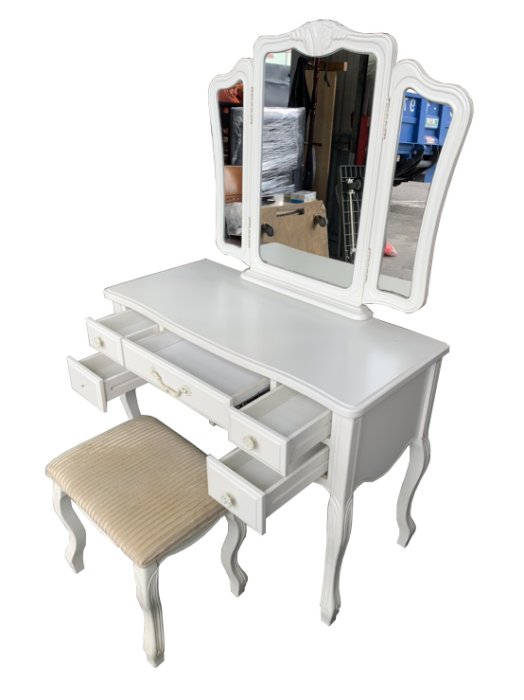台北二手家具 宏品二手家具館*B81603*白色化妝台+椅子*化妝台 立鏡 臥室家具 梳妝檯 床組 床墊 床架 床板衣櫃