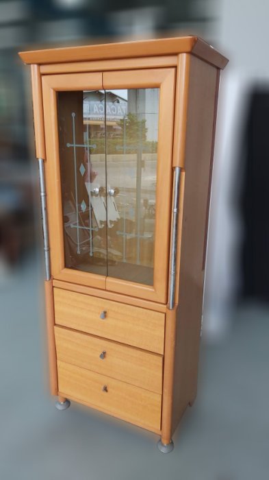 台北中古傢俱/全新家具家電賣場 推薦 泰山宏品二手傢具館 *A82812*木色三抽展示櫃* 中古酒櫃 中古櫥櫃 中古展示