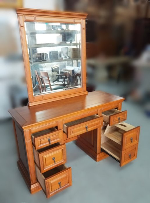 • 台中二手傢俱推薦 宏品全新中古家具電器ZH9137*樟木化妝鏡台*梳妝台 鏡台 庫存臥室床組買千送百豐富喜悅新竹台北桃園