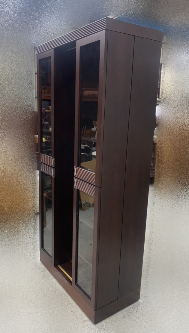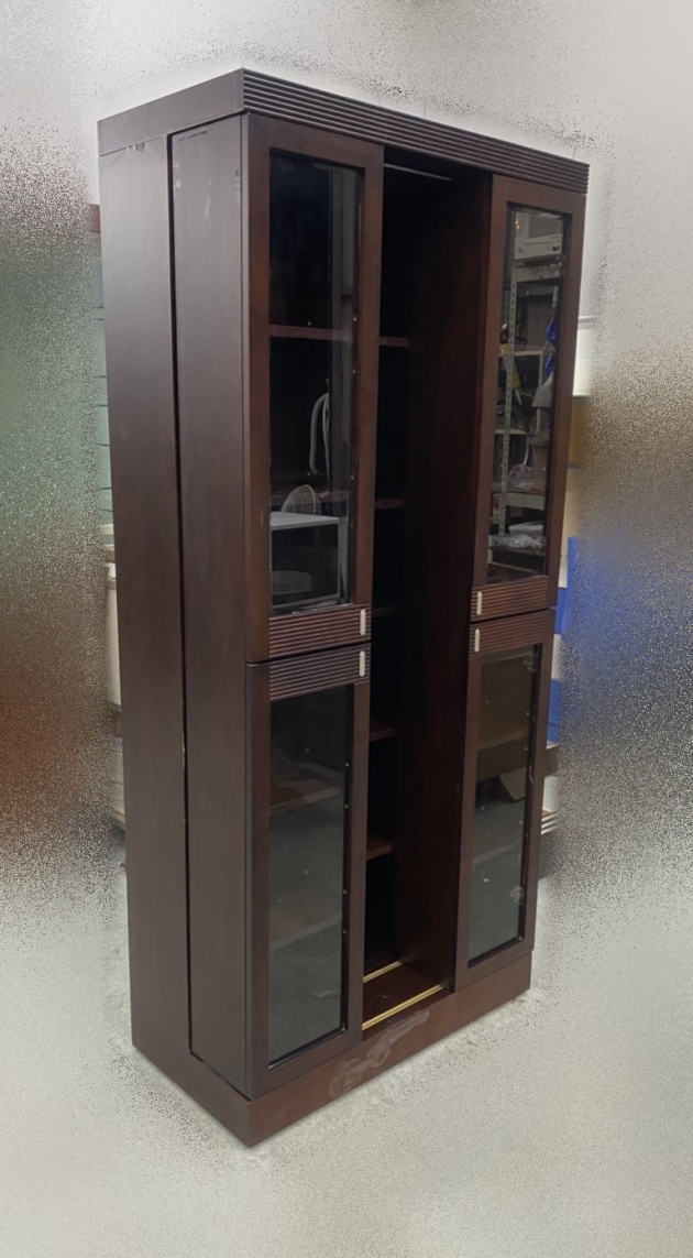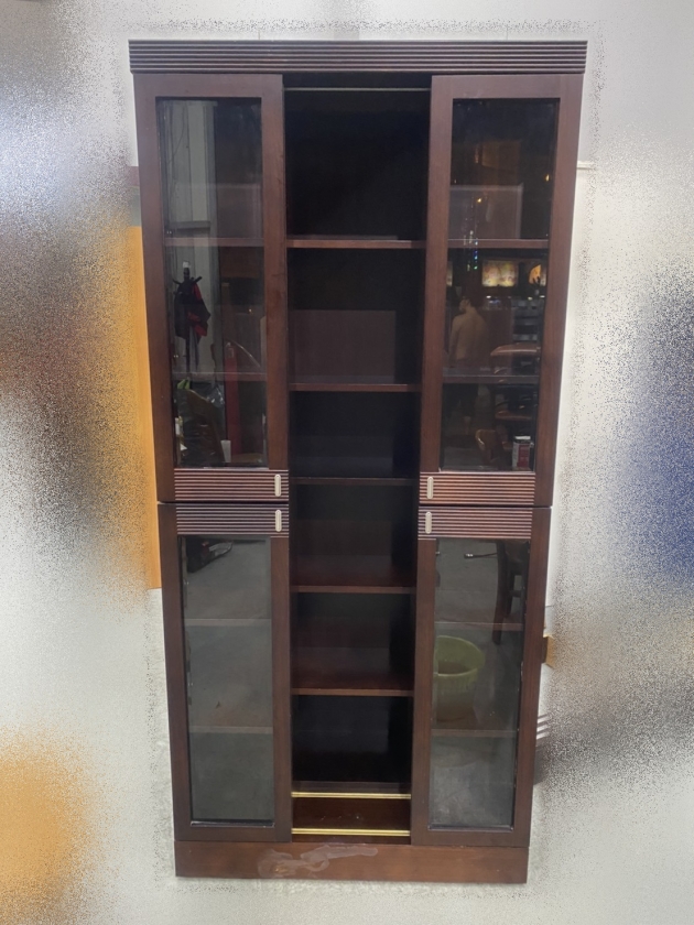 台北二手家具買賣 推薦 泰山宏品中古傢俱館 B90804 * 胡桃色拉門移動書櫃 * 全新庫存中古 書櫃 展示櫃 收納櫃