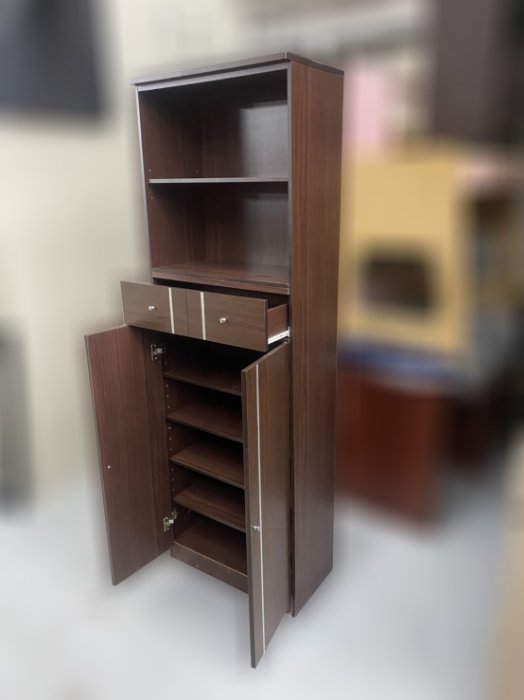 台北二手家具買賣 推薦 泰山宏品中古傢俱館*A100602*胡桃色鞋櫃*實木鞋櫃 雙層鞋櫃 電視櫃 展示架 餐櫃 鞋架