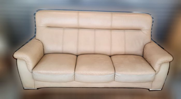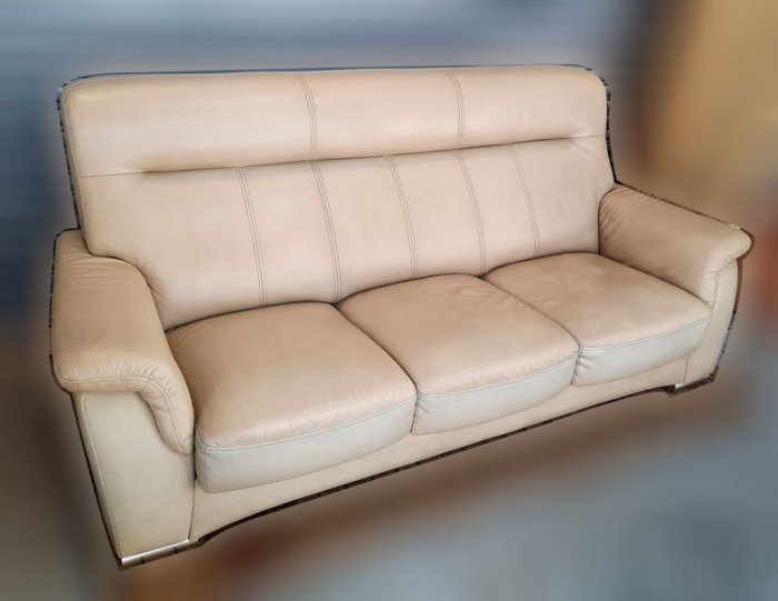 • 樂居二手家具 便宜2手傢俱拍賣 A1010FJJ 奶茶色半牛皮三人沙發 客廳椅 客廳家具 2手桌椅拍賣 台北新竹桃園苗栗